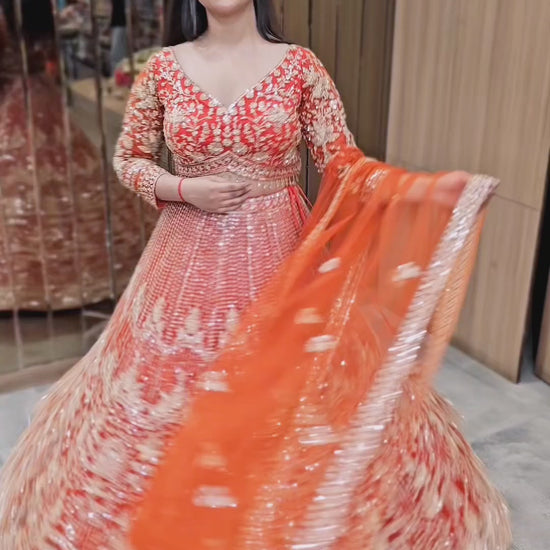 This elegant lehenga choli features delicate hand embroidery, blending traditional artistry with modern design. Crafted from premium fabric, it offers both comfort and style, making it an ideal choice for festive occasions and celebrations. The flattering silhouette and intricate detailing ensure you stand out with grace and sophistication.