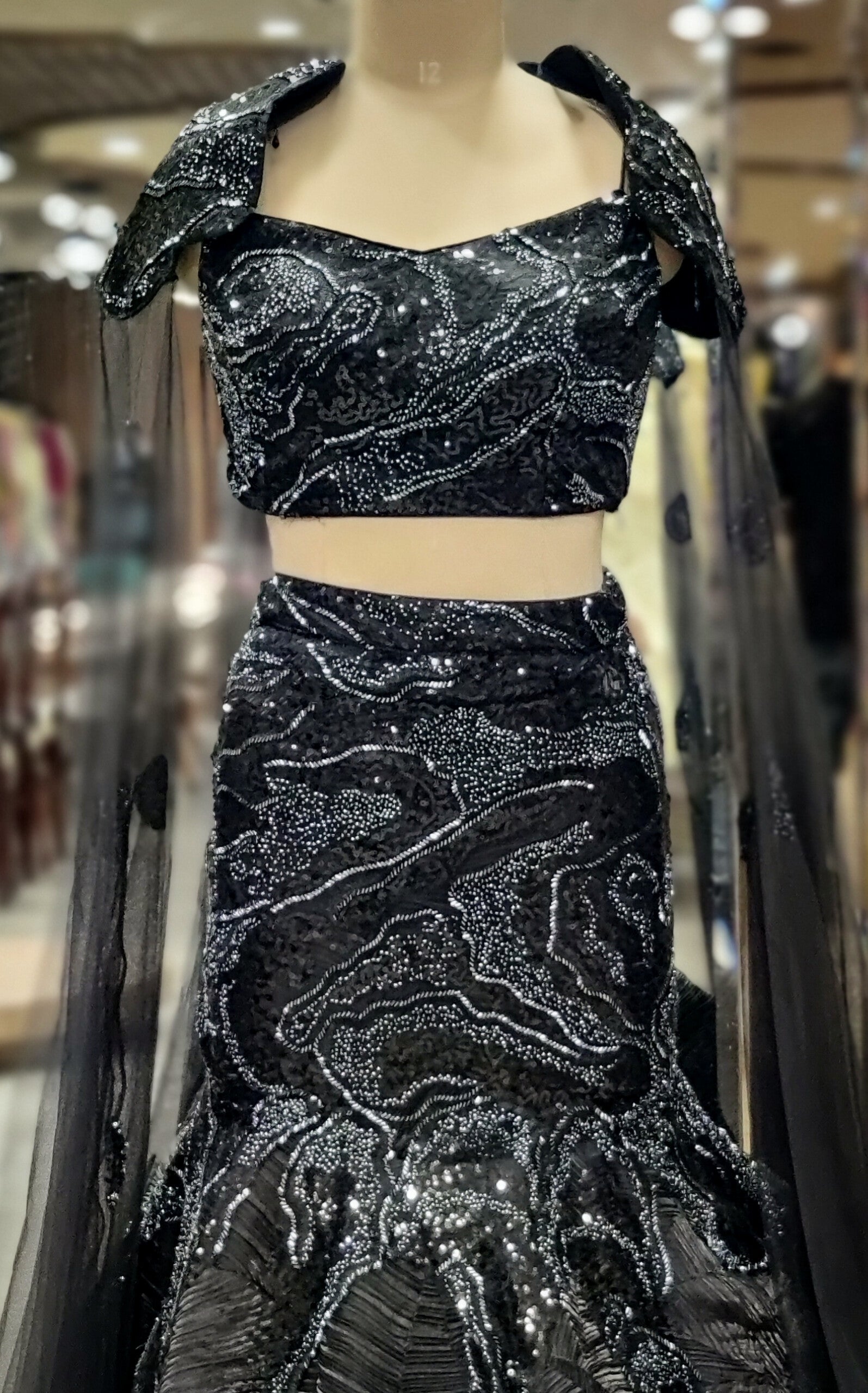 Elegant fish cut silhouette enhances a flattering fit.