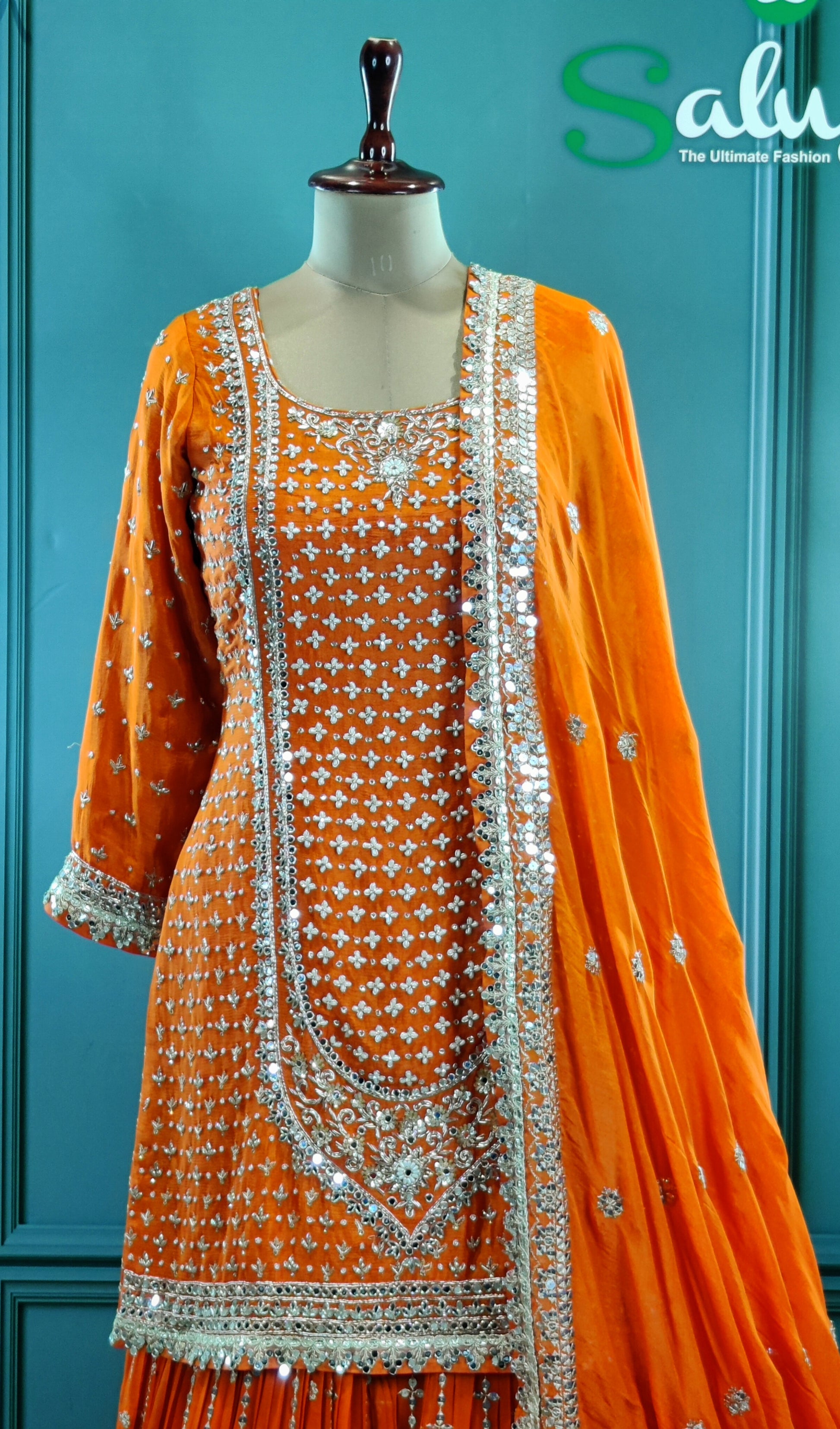 Vibrant Orange Gharara Suit with Traditional Detailing